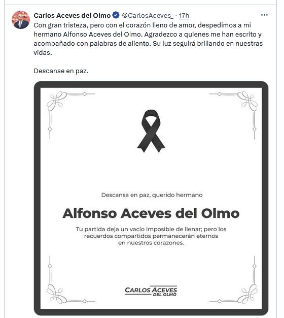 Agradezco a quienes me escribieron y acompañaron con palabras de aliento y solidaridad por el fallecimiento de mi querido hermano Alfonso, a quien llevaremos por siempre en el corazón.