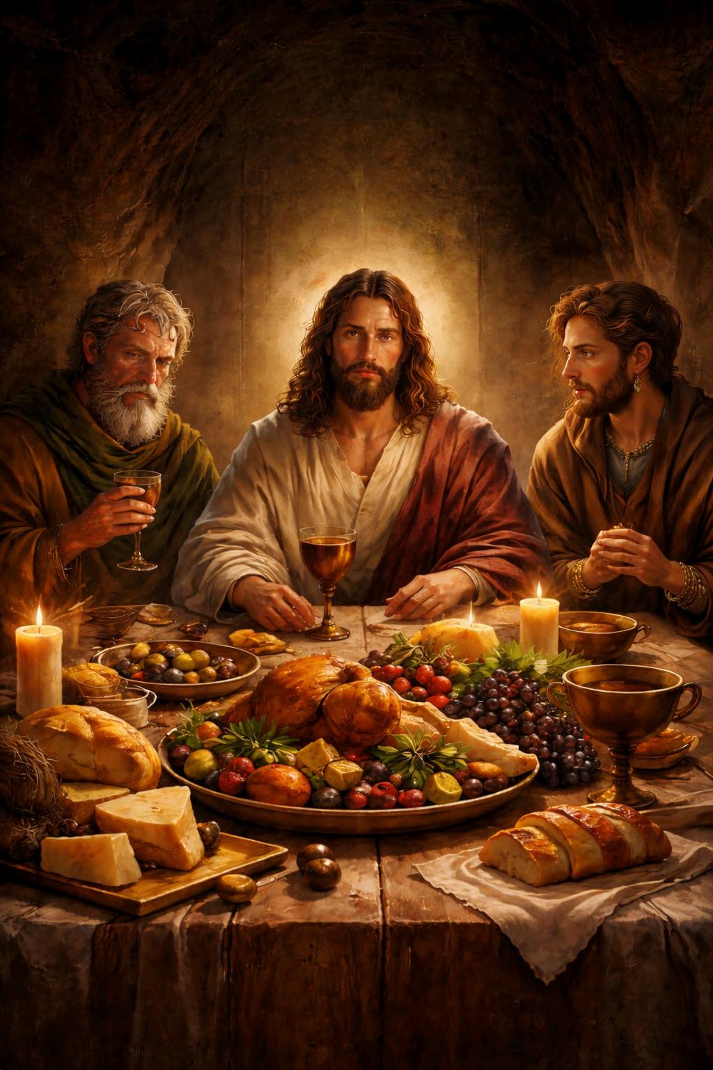 Los evangelios relatan que durante la cena Jesús partió el pan y compartió el vino, asociándolos con su cuerpo y su sangre Este gesto, que siglos después daría origen a la eucaristía, fue interpretado por las primeras comunidades cristianas como la instauración de una nueva alianza entre Dios y la humanidad.