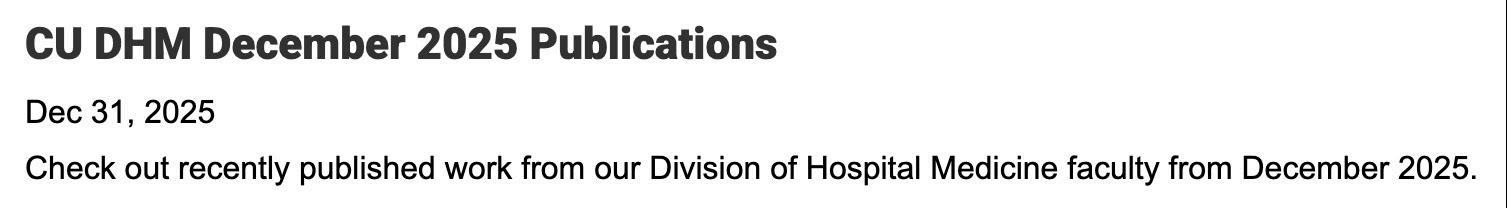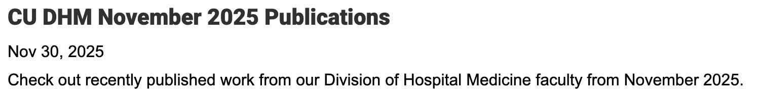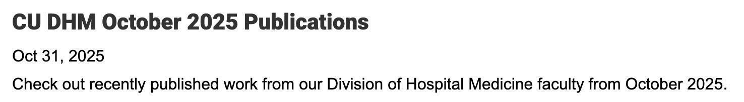 As we close out another productive quarter, I find myself reflecting on the many wins and new opportunities across our division. I am deeply grateful to work alongside such thoughtful, dedicated, and compassionate clinicians who continue to show up for our patients, learners, and each other every day. This period has also marked meaningful growth in our research efforts. Over the past year, our division contributed nearly 200 peer-reviewed publications, a remarkable achievement that reflects both the depth of expertise and the collaborative spirit of our team. In addition to these publications, our faculty and staff have shared their work through articles and invited speaking opportunities, helping advance hospital medicine well beyond our institution. These accomplishments represent countless hours of inquiry, mentorship, and teamwork.