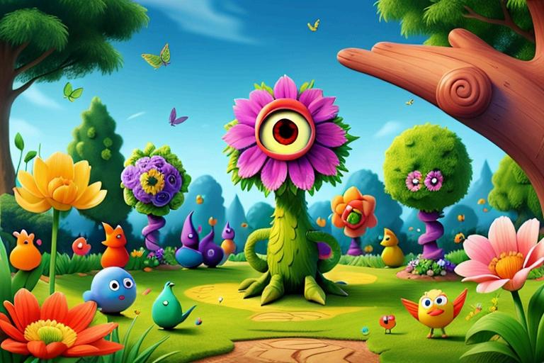 Flores con ¡ más ojos! , animales graciosos llenos de color.