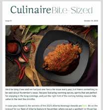 For subscriptions, competitions and to read Culinaire online: culinairemagazine.ca