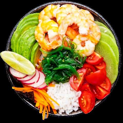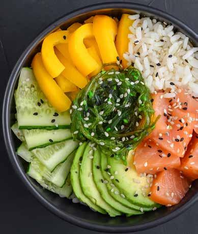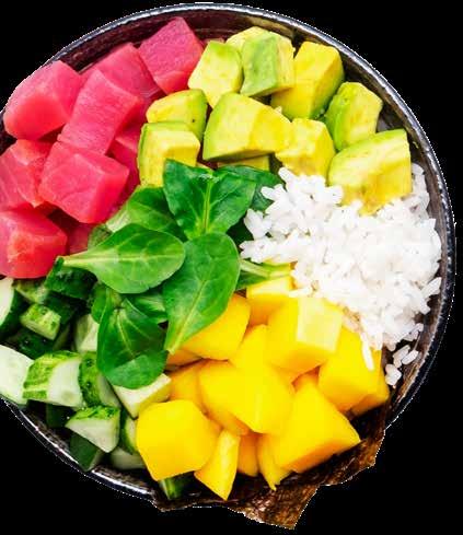 textures, and the Western palate can only restrain itself from adding avocado to a dish for so long, so eventually poke bowls became a base (white rice, brown rice, or lettuce), a protein (tuna and salmon being the most popular), and your choice of ten or more different toppings and sauces.