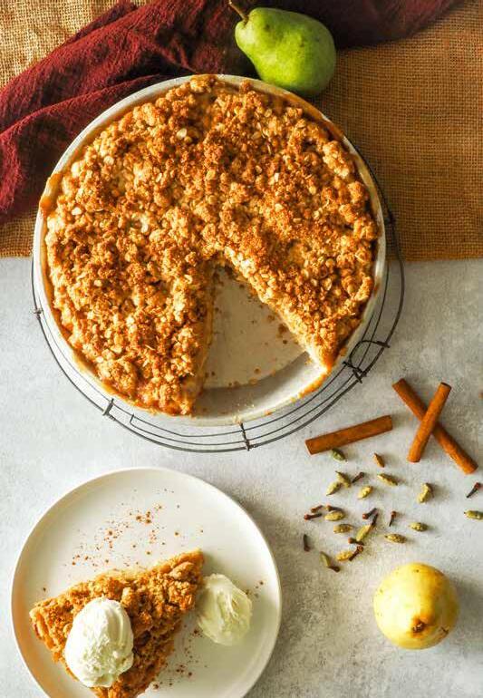 6. Remove from oven and top with the chai crumble topping and return to oven for another 30 minutes.
