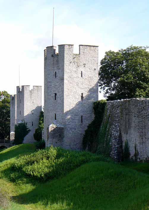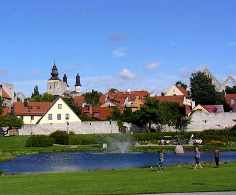 idylliske, gamle Hansestad, som med god grund kaldes rosernes og vindenes by. Her er gader, der bliver til trapper, skråninger med udsigt til Østersøen og smalle stræder med høje pakhuse fra middelalderen. Overalt i byen mindes vi fortidens rigdomme, som blev købt og solgt her på deres vej til København eller Novgorod, Byzans eller Finmarken. I byen ser vi mange kirkeruiner og kun en aktiv kirke, nemlig domkirken helliget Jesu mor, Maria. Visby rummer mere end 200 bygninger fra middelalderen, og overalt mærker man historiens vingesus, så der er nok at tage fat i!