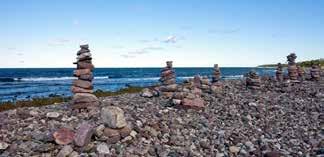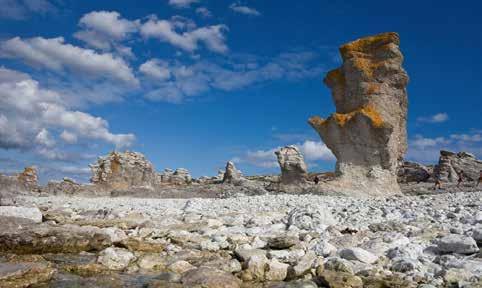 Herefter sætter vi kursen mod Fårös nordligste spids, Langhammar Raukområde, som også kendes fra Bergmans mystiske filmlandskab. Her hersker en gold og barsk natur – nærmest som på en udslukt vulkan eller i en stenørken. Det er også her, man finder de største rauker, sære stenformationer af sandsten med mængder af fossiler i, der rager mere end 20 meter op i luften i strandkanten. De er så store og så fremmedartede, at de næsten fremstår som trolde på stranden. Man forstår hurtigt hvorfor folk i tidligere tider tillagde de her