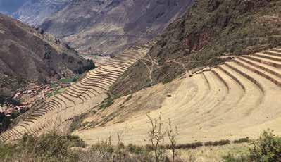 Inkaerne byggede enorme terrasser på bjergskråningerne højt oppe i Andesbjergene. Her dyrkede de deres afgrøder.Takket være deres avancerede ingeniørkunst udnyttede de både jord og vand til dyrkningen. Disse terrasser dækker store dele af bjergsiden og ligger stadig som da inkarne skabte dem. Et fuldkomment fantastisk syn.