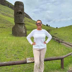 Emilia har deltaget i mange arkæologiske udgravninger på Påskeøen. Hun er instruktør i polynesiske danse, og hun er vores guide på øen.