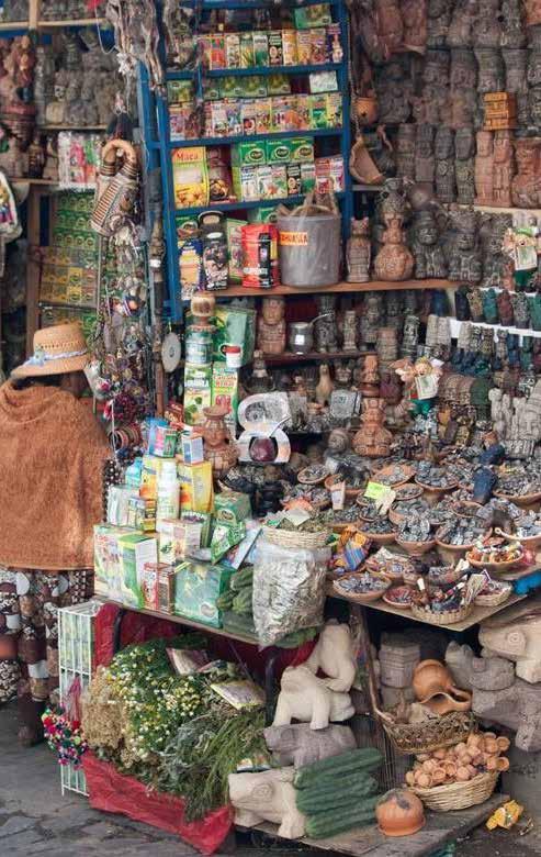 transportsystem med svævebaner. Vi svæver over byens forskellige kvarterer, og ser ned fra det meget effektive transportsystem. Vi besøger det arkæologiske museum, en god forberedelse til næste dags besøg i Tiwanaku og øerne i Titicaca søen. Vi slutter af med et besøg på det såkaldte ”Heksemarked”.