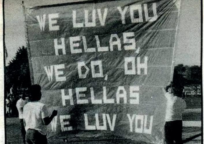 presentes com as faixas, destacando-se os Diabos com a mítica faixa a dizer “DIABOS ON TOUR”. Nesse dia também tive o prazer de me cruzar, nas imediações do estádio, com o Presidente em funções, Manuel Damásio, que ainda se deu ao trabalho de assinar a bandeira que levava comigo.
