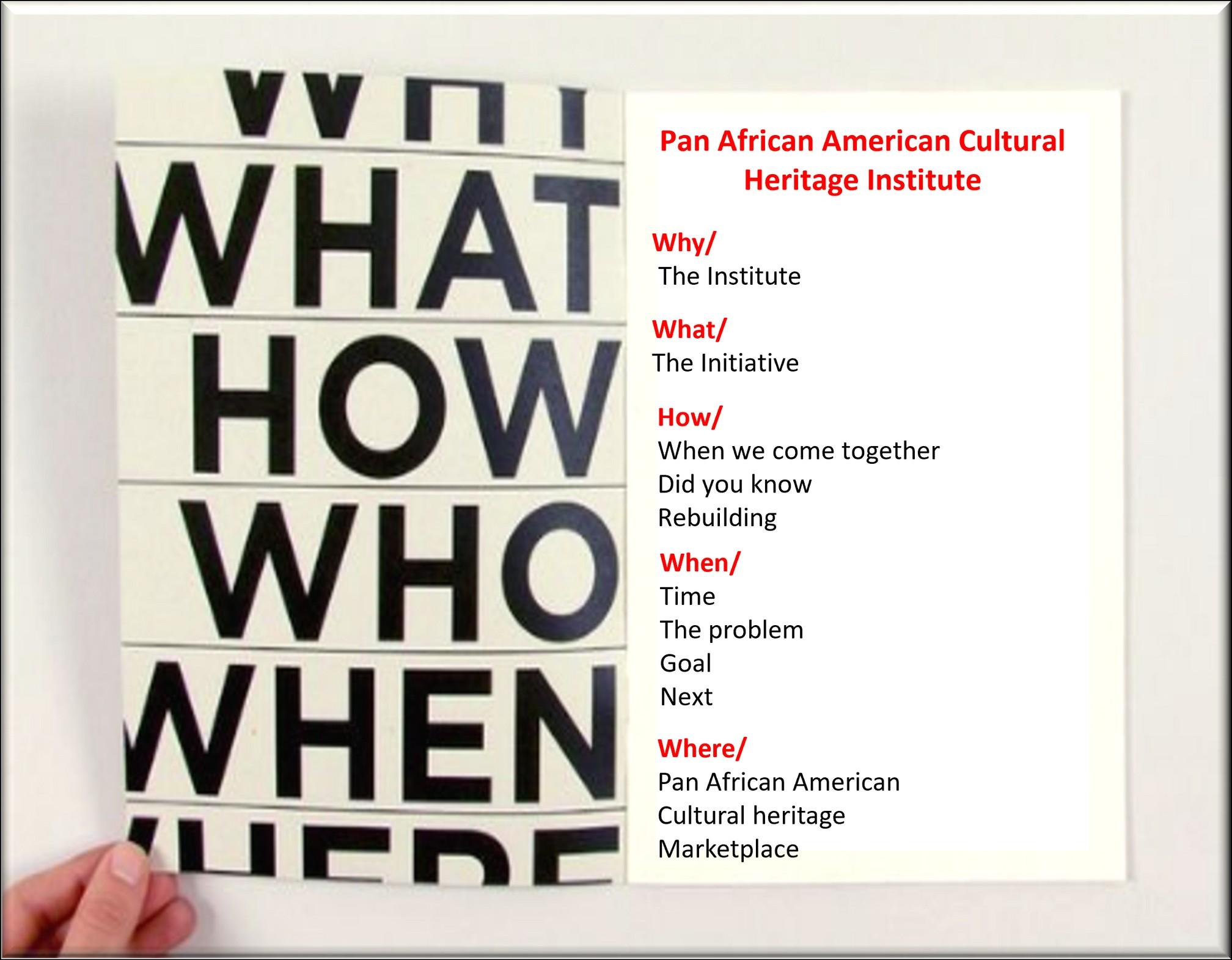 There is a need to share “Our Cultural Knowledge and Experiences” in the areas of Commerce, Culture, Community, Education, Influence, Knowledge, and Faith; via established business, educational, social and tourism networks. The Pan African Cultural Heritage Alliance in partnership with the Pan African Cultural Heritage Institute and the National Black Business Support Corporation have adapted the Forgotten Communities concept as the foundation for its marketing program.