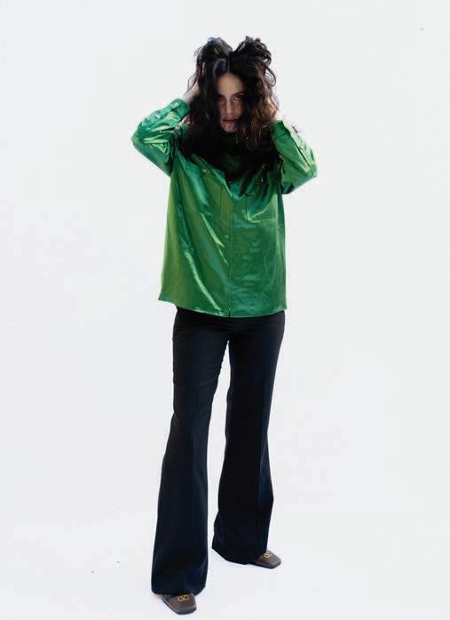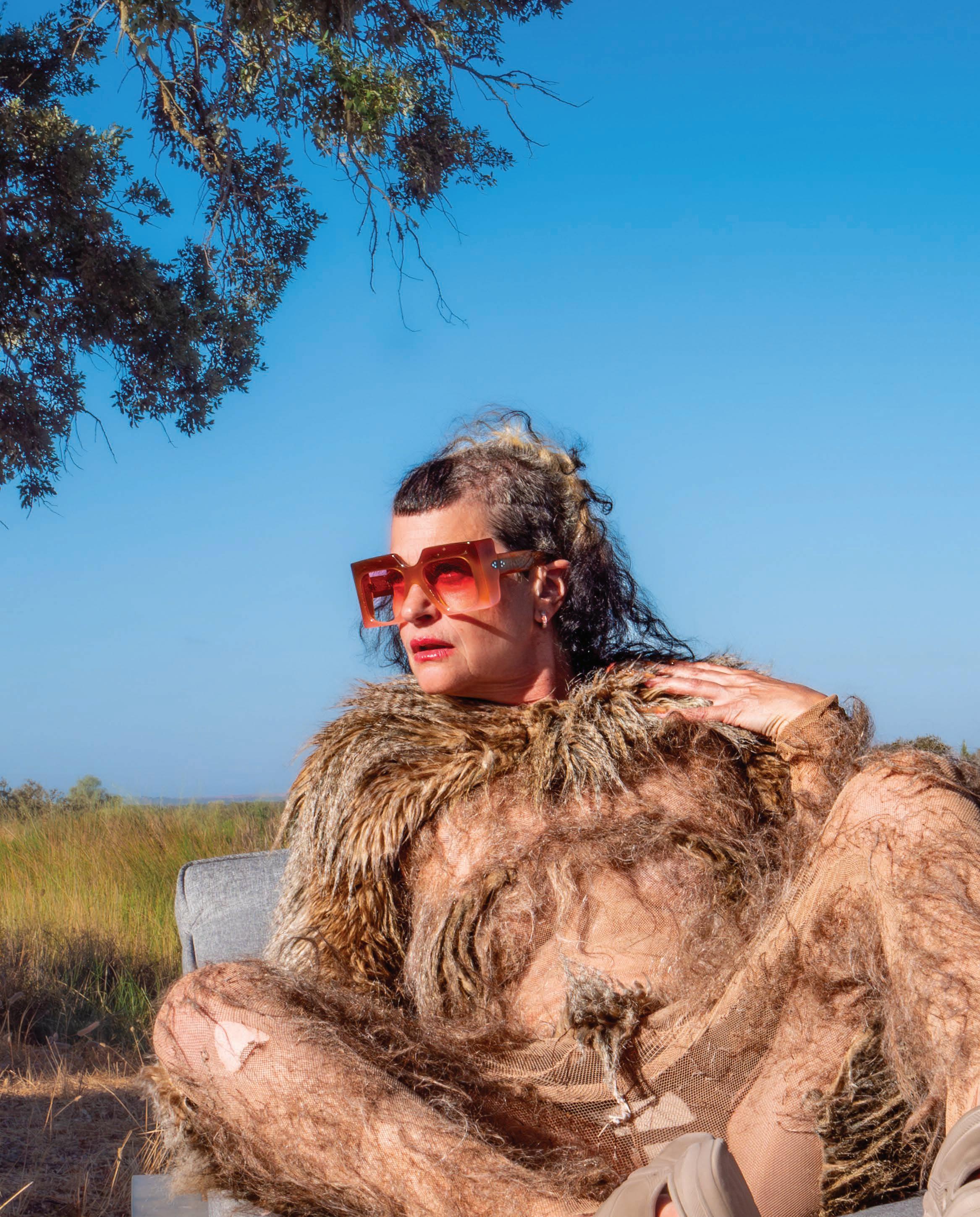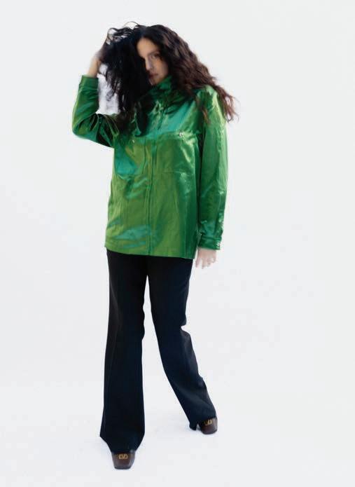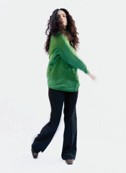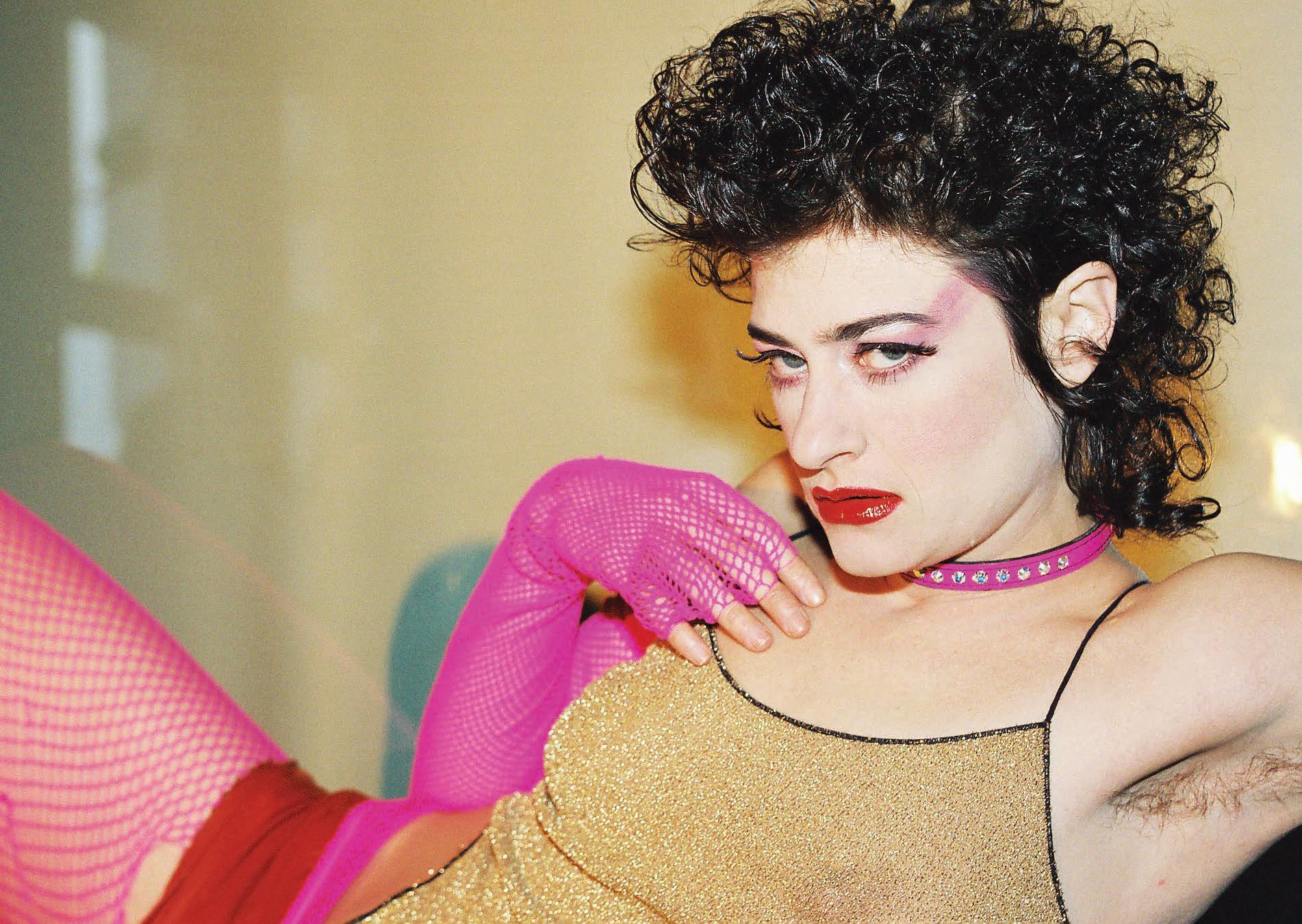Referencing the ban on genderaffirming care for minors in the U.S. (RFK Jr. and Dr. Oz announced new federal rules to this effect the day before our conversation), she brings up her track “Not In Your Mouth None of Your Business.” It’s a furious singalong with a ’90s Digital Hardcore vibe, driven by a floor-shaking, metronomic kick and tinny, distorted vocals shoutchanting the title’s defiant slogan. (In the brilliant psychedelic, strobing video for the Boys Noize remix, she struggles to sing as she squashes her face between two glass casseroles.)