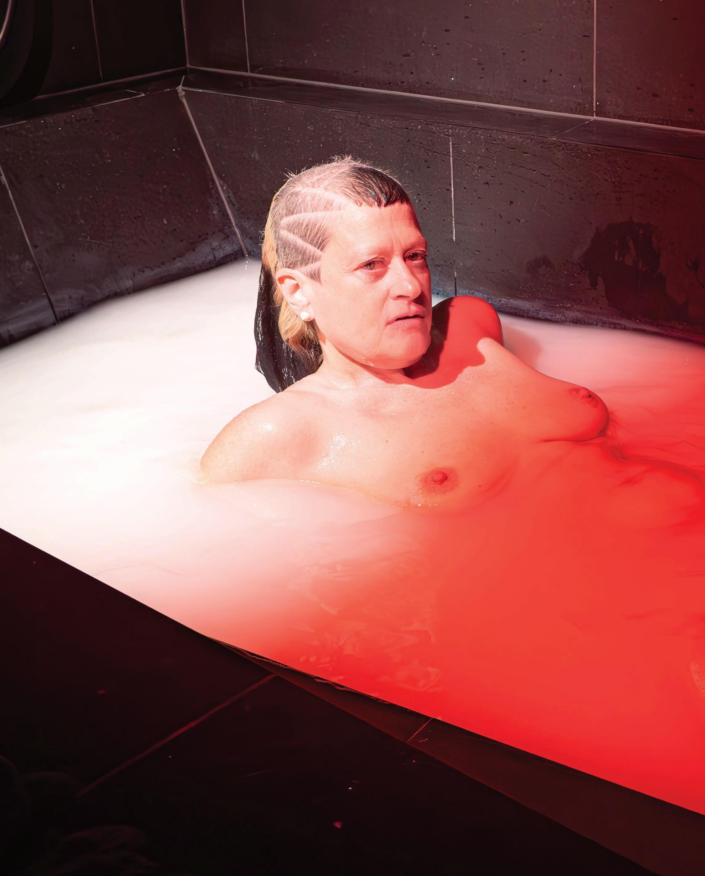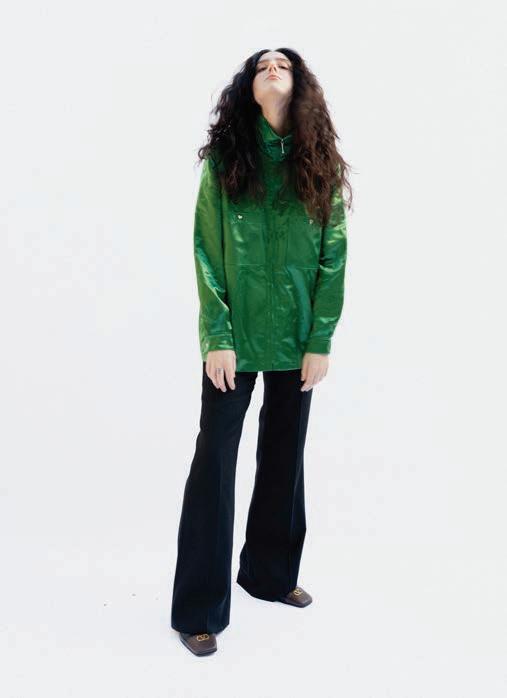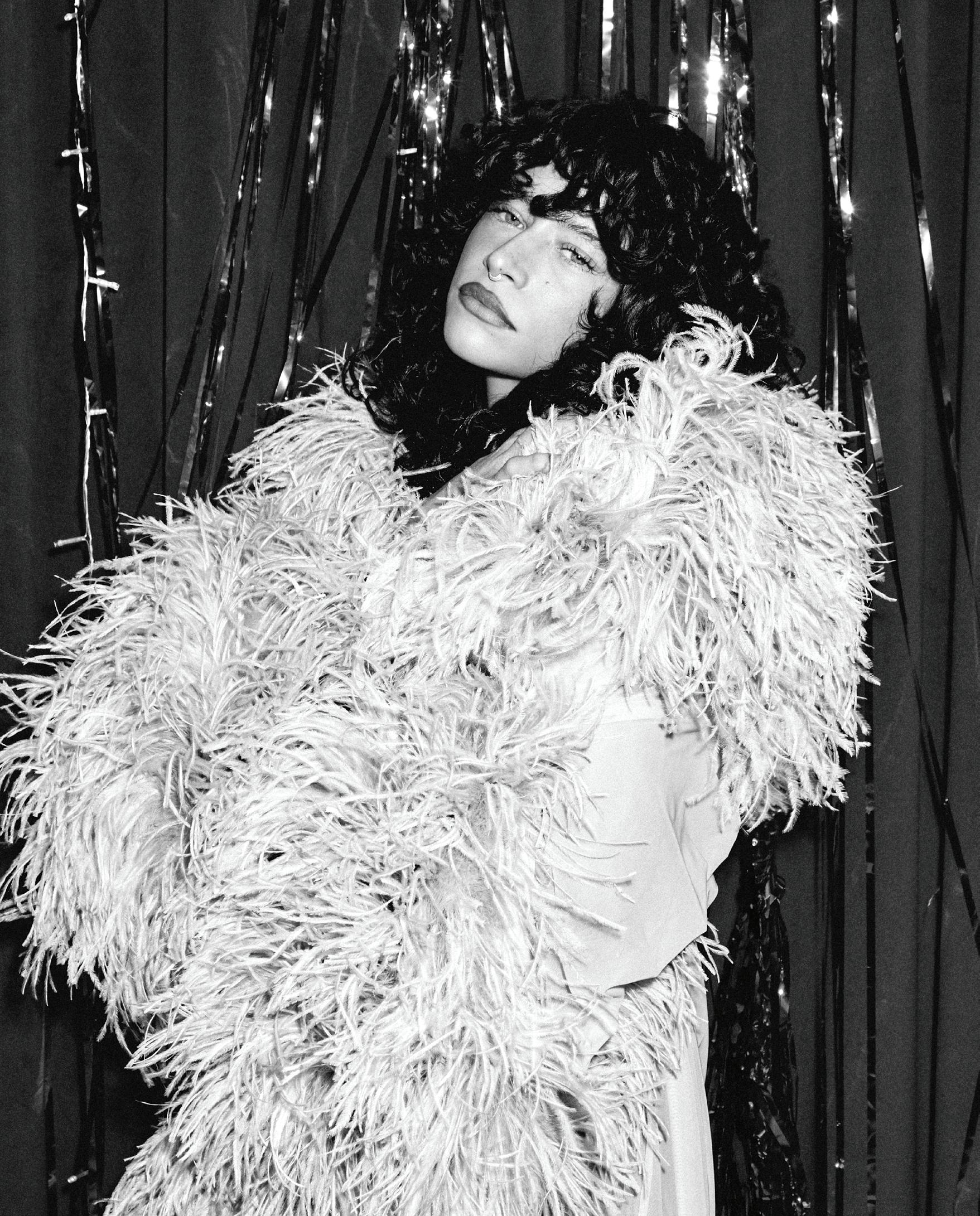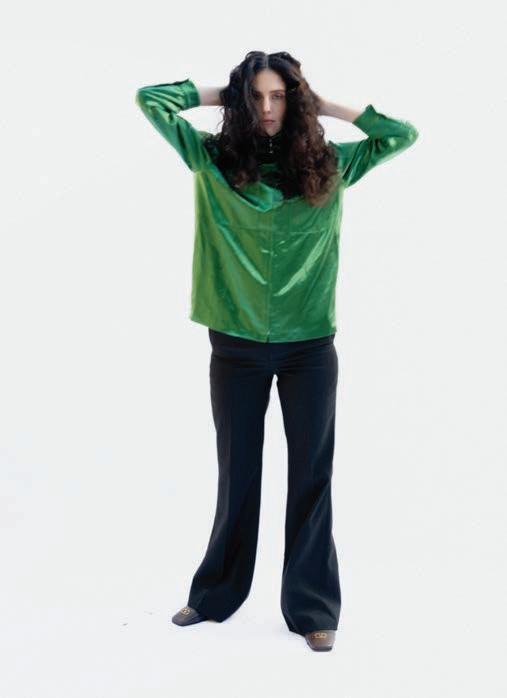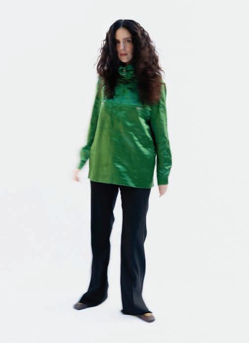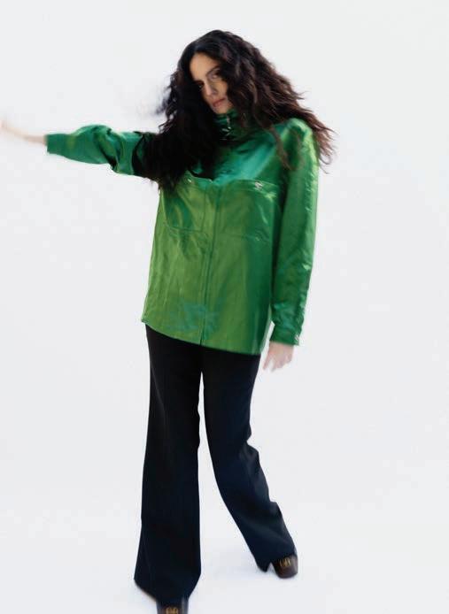 Referencing the ban on genderaffirming care for minors in the U.S. (RFK Jr. and Dr. Oz announced new federal rules to this effect the day before our conversation), she brings up her track “Not In Your Mouth None of Your Business.” It’s a furious singalong with a ’90s Digital Hardcore vibe, driven by a floor-shaking, metronomic kick and tinny, distorted vocals shoutchanting the title’s defiant slogan. (In the brilliant psychedelic, strobing video for the Boys Noize remix, she struggles to sing as she squashes her face between two glass casseroles.)