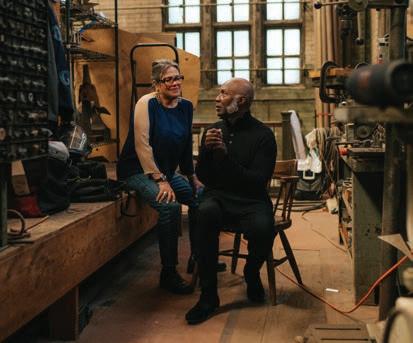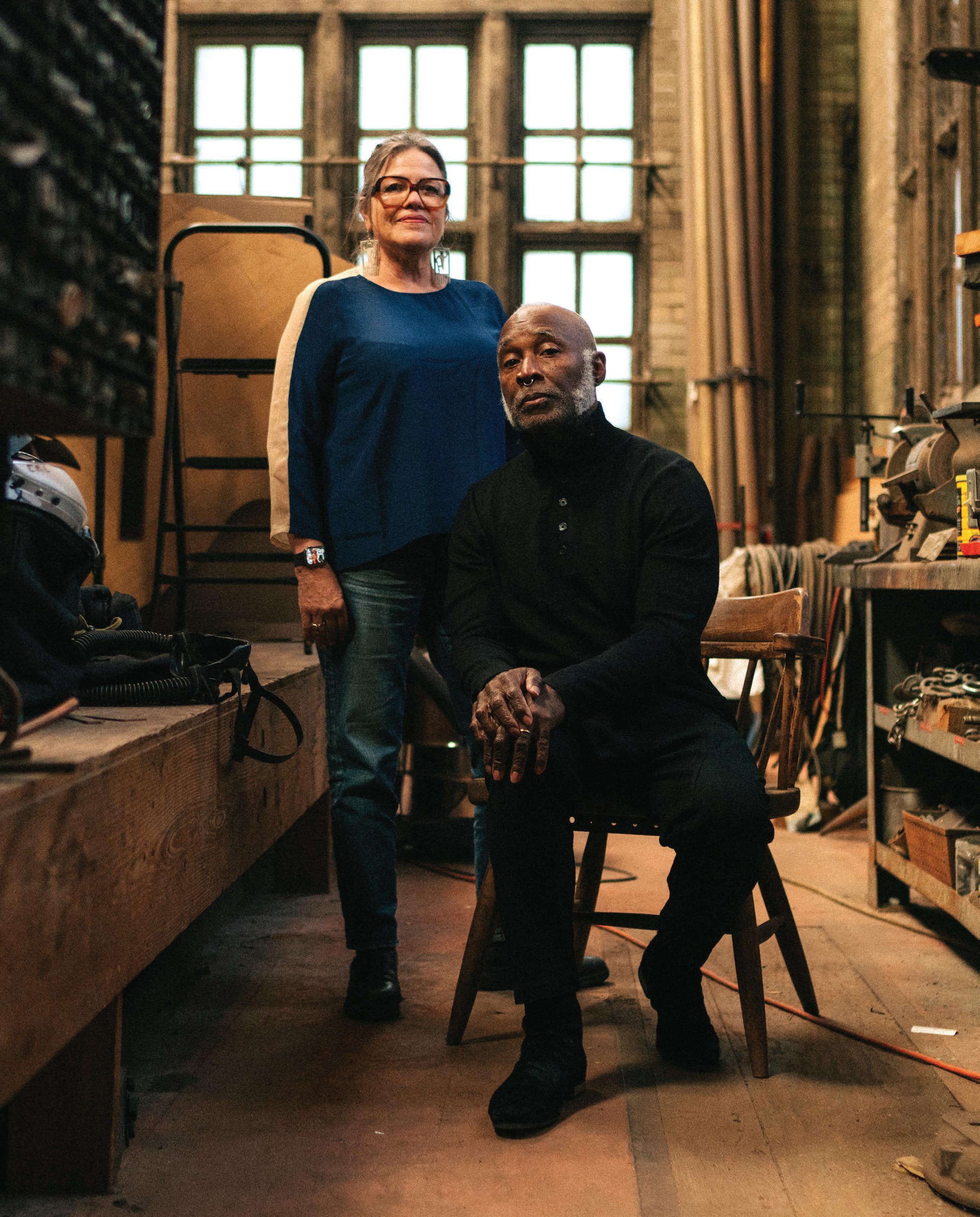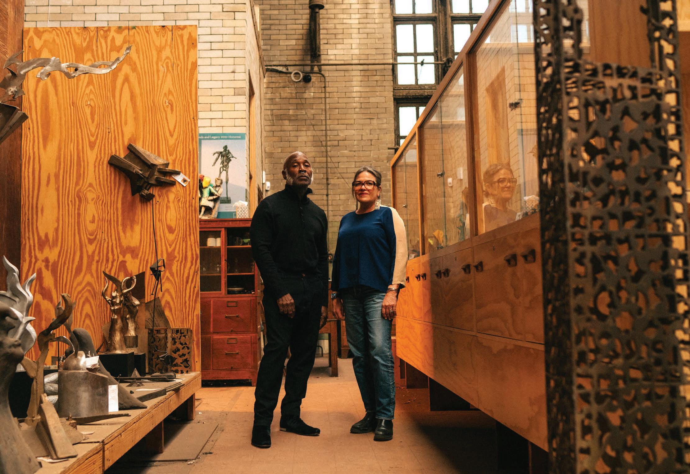 Page 52 (clockwise): Portrait of Marie Watt and Nick Cave at the Chicago studio of sculptor Richard Hunt by Alexa Viscius.