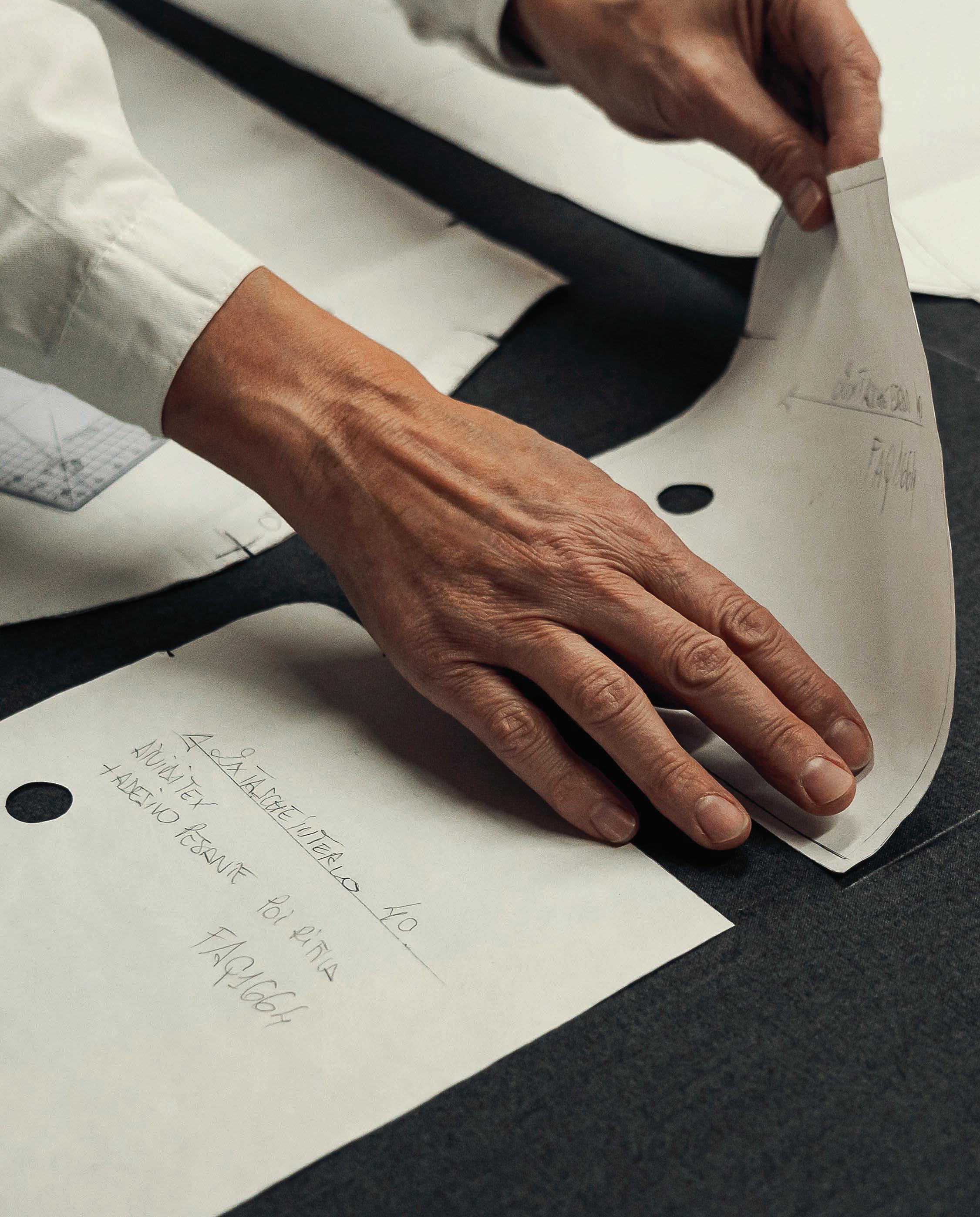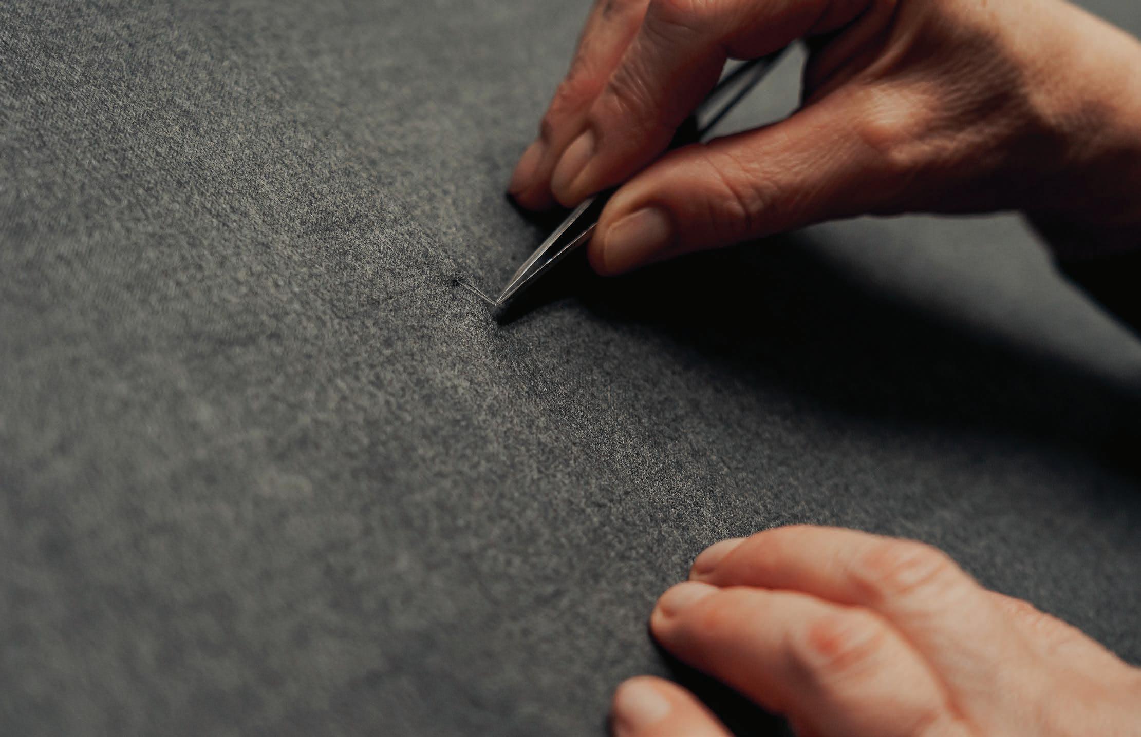 fell stitching, also a rare and ancient artisanal technique performed entirely by hand with thread and needle, to ensure a smooth, immaculate finish on the both the inner and outer sides of the garment.