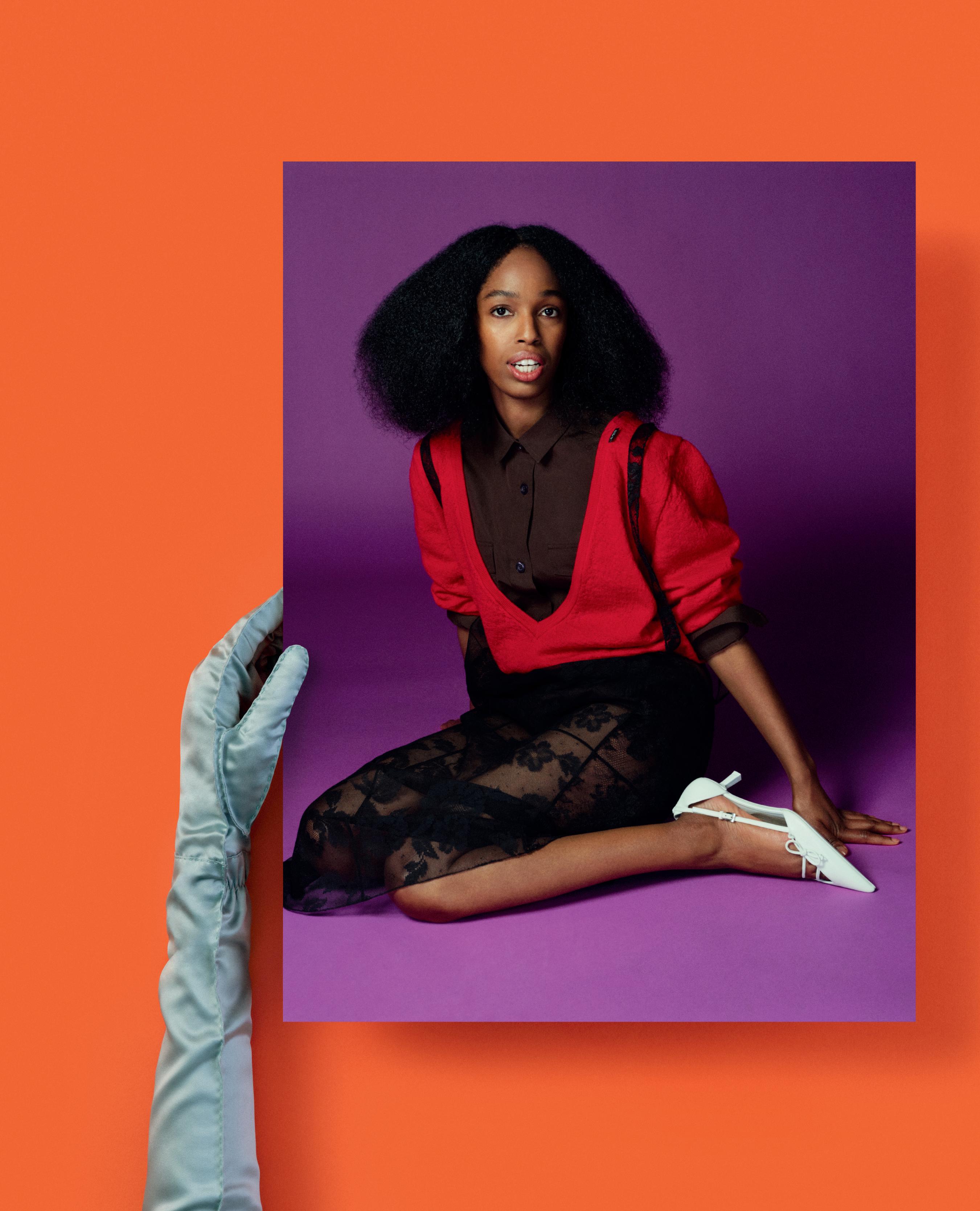 Page 54 (clockwise): Portrait of Eva Victor wearing Miu Miu by Kobe Wagstaff.