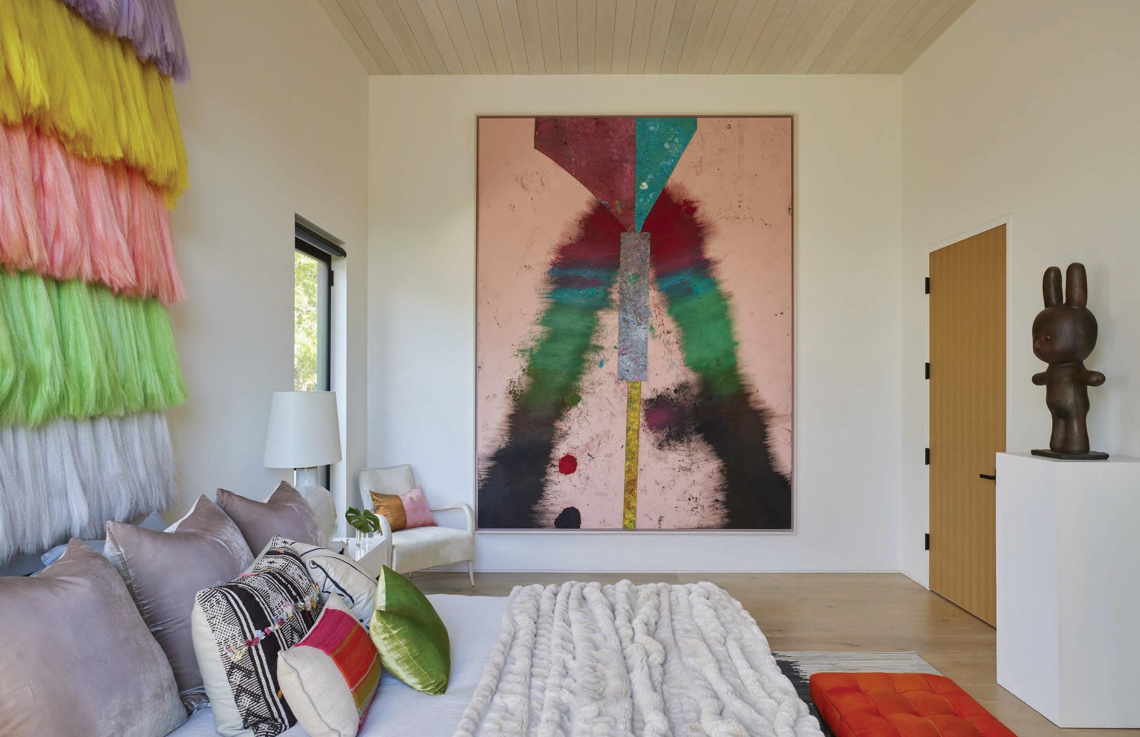 Amanda Precourt’s home with, left to right, Lauren Halsey, Untitled, 2021; Sterling Ruby, TURBINE. GABAPENTIN , 2022; and Otani Workshop, Standing rabbit , 2022. Photography by Yoshihiro Makino.