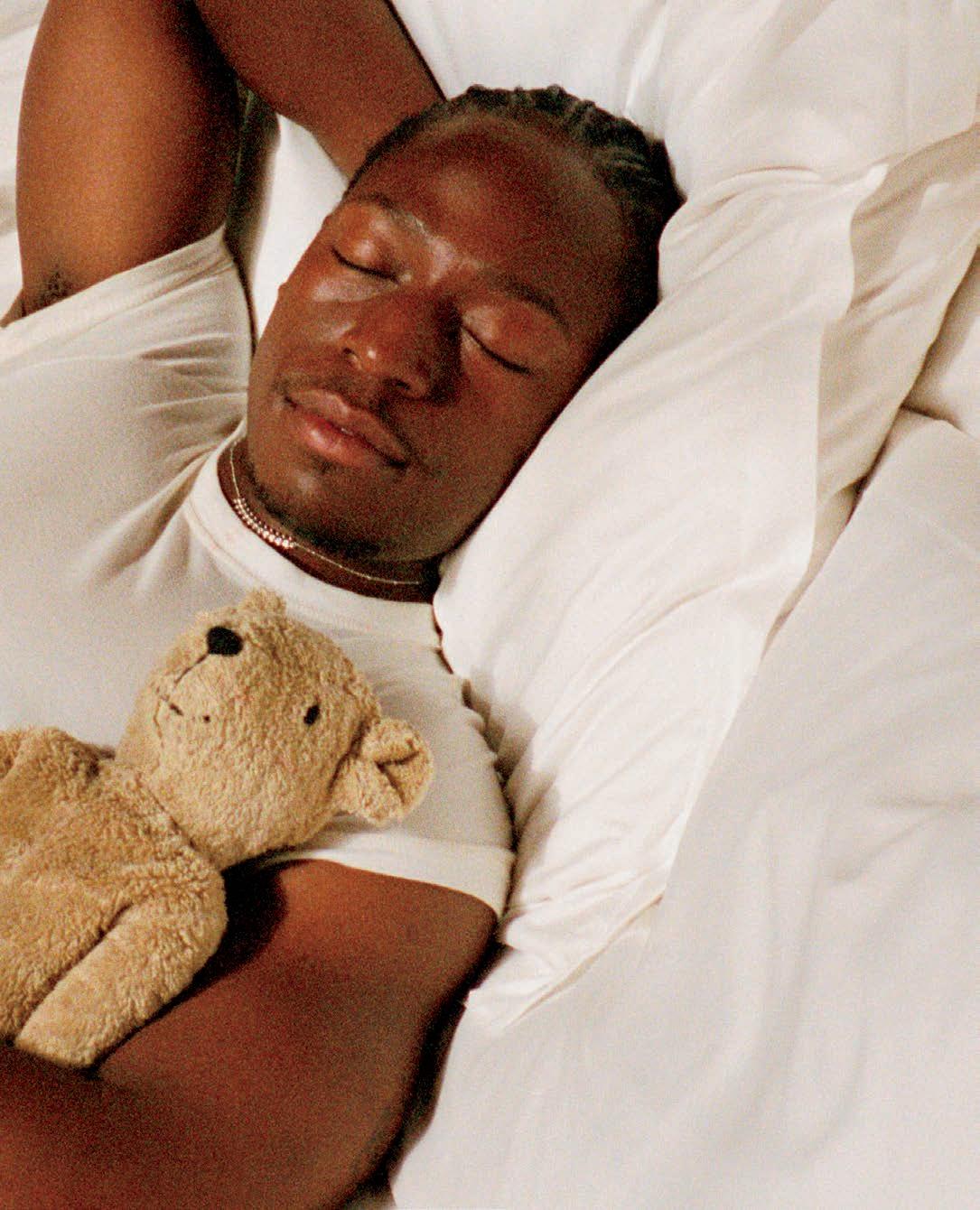 “I got the call to shoot David Jonsson in London and immediately felt connected to this assignment,” Christian Coppola recalls of the moment that CULTURED enlisted him to shoot the actor for this issue. The photographer’s dreamy shots—of everyone from Jeff Goldblum to Olivia Rodrigo and Connor Storrie (for CULTURED’s last issue)—were a perfect match for the British actor, who made himself comfortable in the plush environs of London’s Raffles Hotel. “We shot in the Churchill Suite, which was formerly the headquarters of MI5,” says Coppola. “Checking in for the shoot felt like going through airport security. Shooting in a room where Britain entered World War II felt quite surreal as we blasted Arctic Monkeys and dissected fancy tea sandwiches. Keep an eye out for my teddy bear Aloysius, our personal tribute to Brideshead Revisited.”