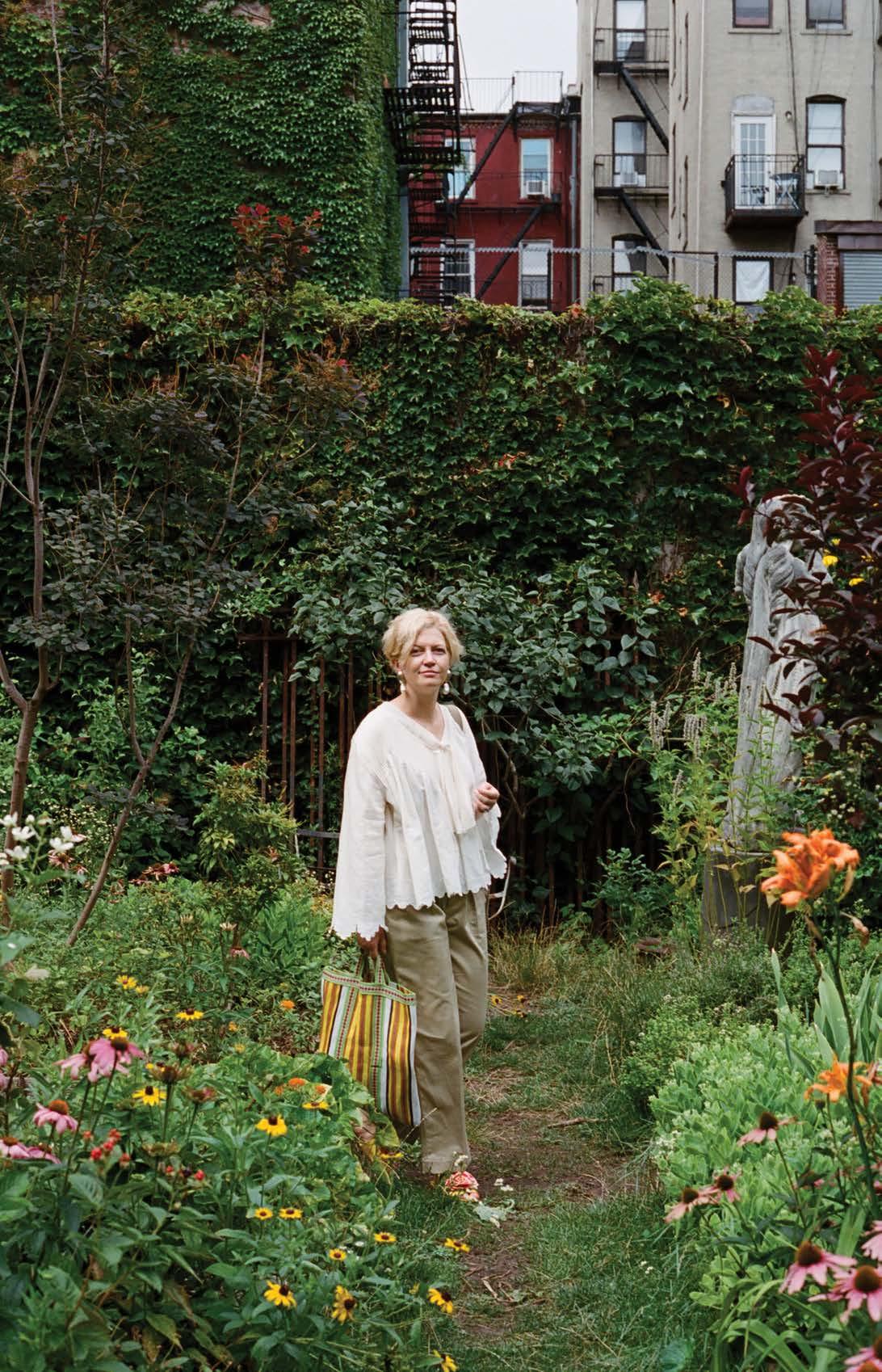 From the cantilevered kitchen to the twofloor family room, the interior designer’s Cobble Hill abode is a leafy reprieve in the middle of the city.