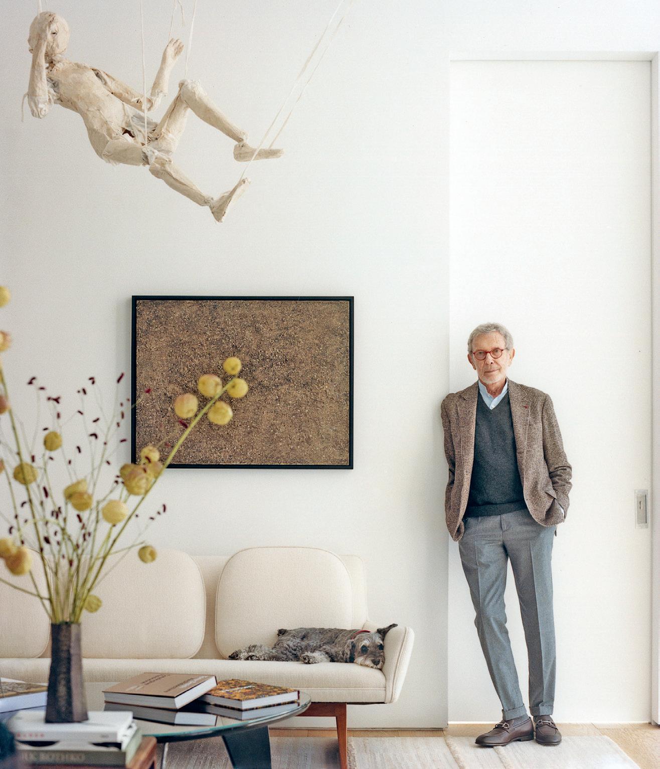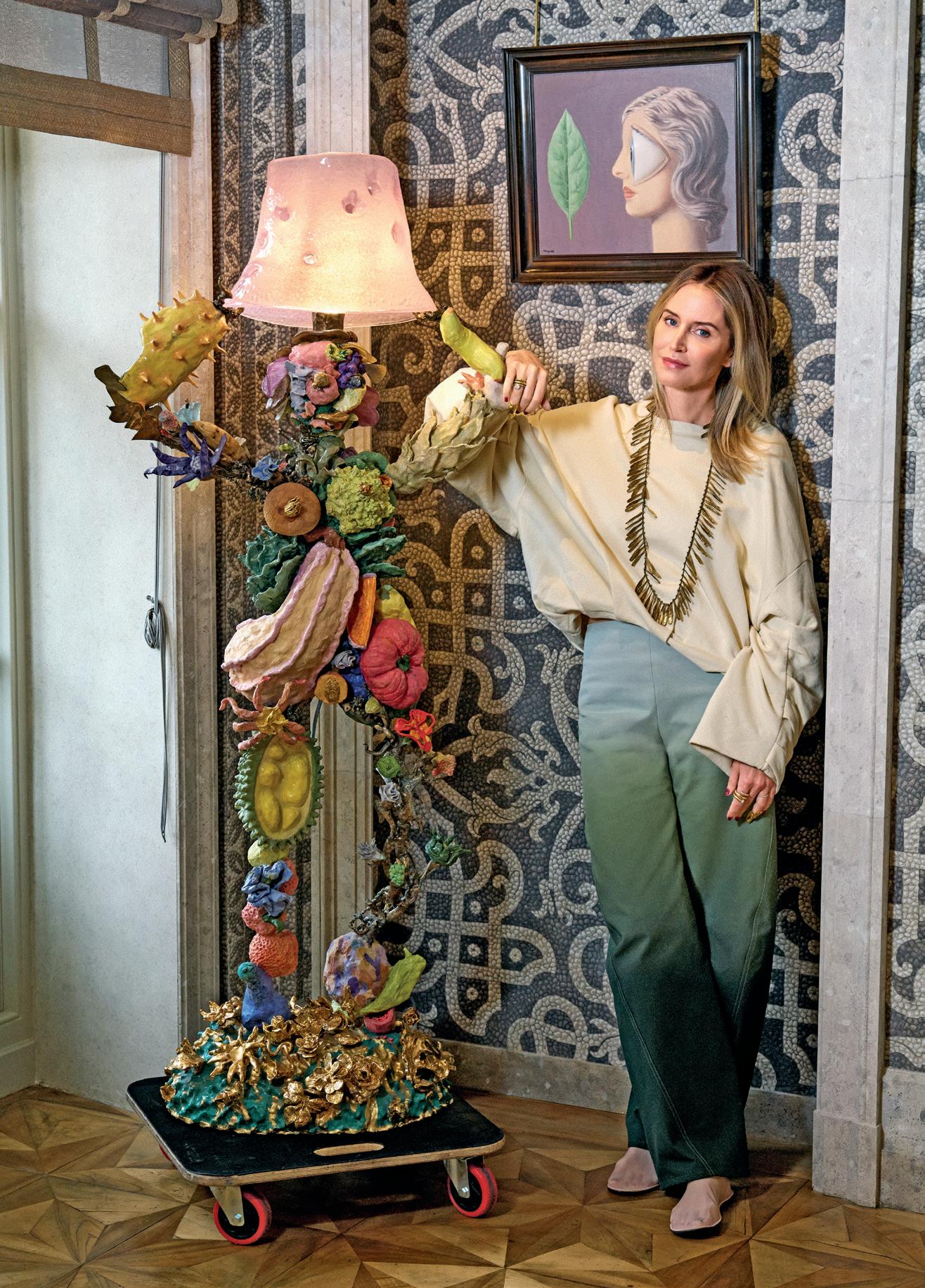 Page 62 (clockwise): Arne Glimcher photographed with his dog, Max, by Tom Scanlan at Pace in New York. Monica Lewinsky photographed wearing a Celine jacket, Hermès sweater, and Van Cleef & Arpels necklace by Molly Matalon. Artwork and furniture in Belma Gaudio’s London home by Christina Quarles, Nicole Wermers, Fernando and Humberto Campana, and Vladimir Slavov; photography by Mary McCartney. Alison Roman photographed by Matías Alvial in New York.