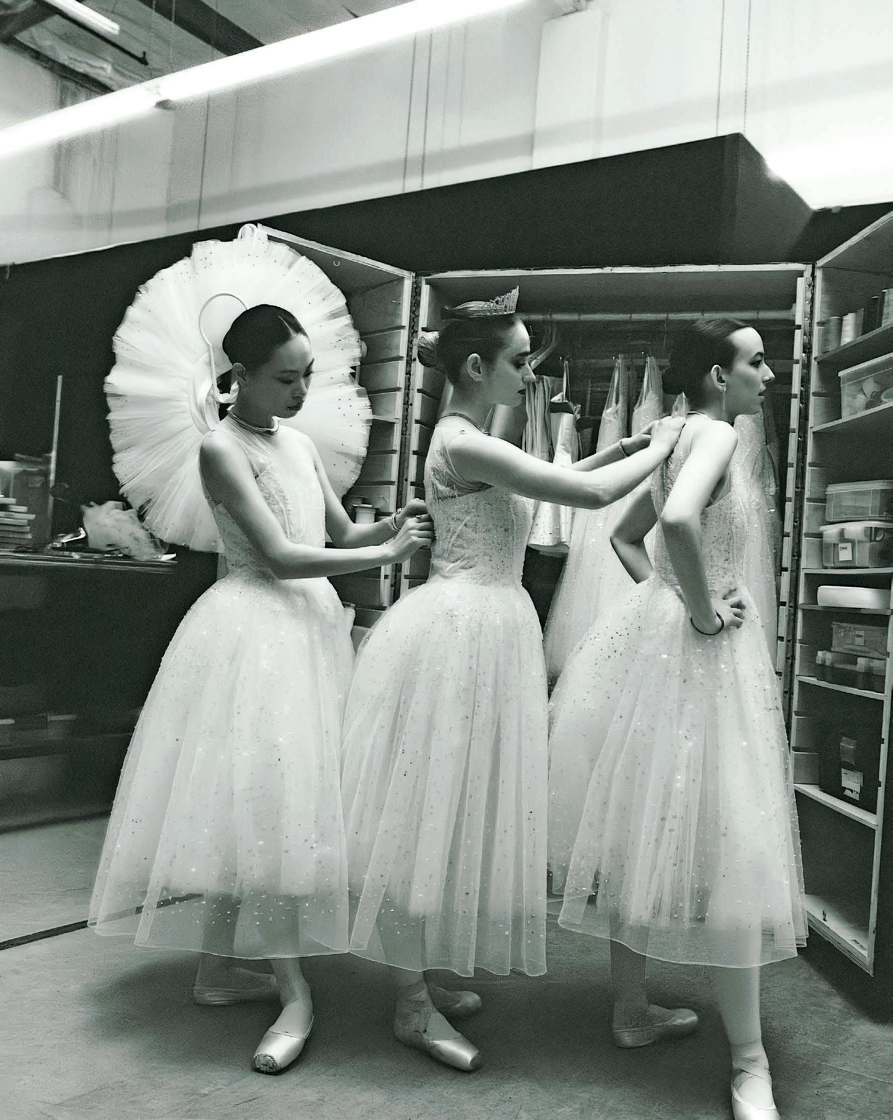 “I’ve always been drawn to the stillness behind performance, to the quiet pulse of practice,” says Olivia Malone. For this issue, the photographer went behind-the-scenes with the Los Angeles Ballet company as dancers donned their Nutcracker costumes for the upcoming season—along with a litany of Bvlgari jewels. “Photographing dancers in their rehearsal studio felt like a way of honoring that interest—capturing both the discipline and the enduring beauty of ballet,” adds Malone. The photographer, who works between Los Angeles and New York, probes the abstract and sculptural possibilities of her medium—her 2020 monograph, Tonal, being the most fully realized example of this pursuit. Her work has also been published in Vogue, Harper’s Bazaar, and The New York Times.