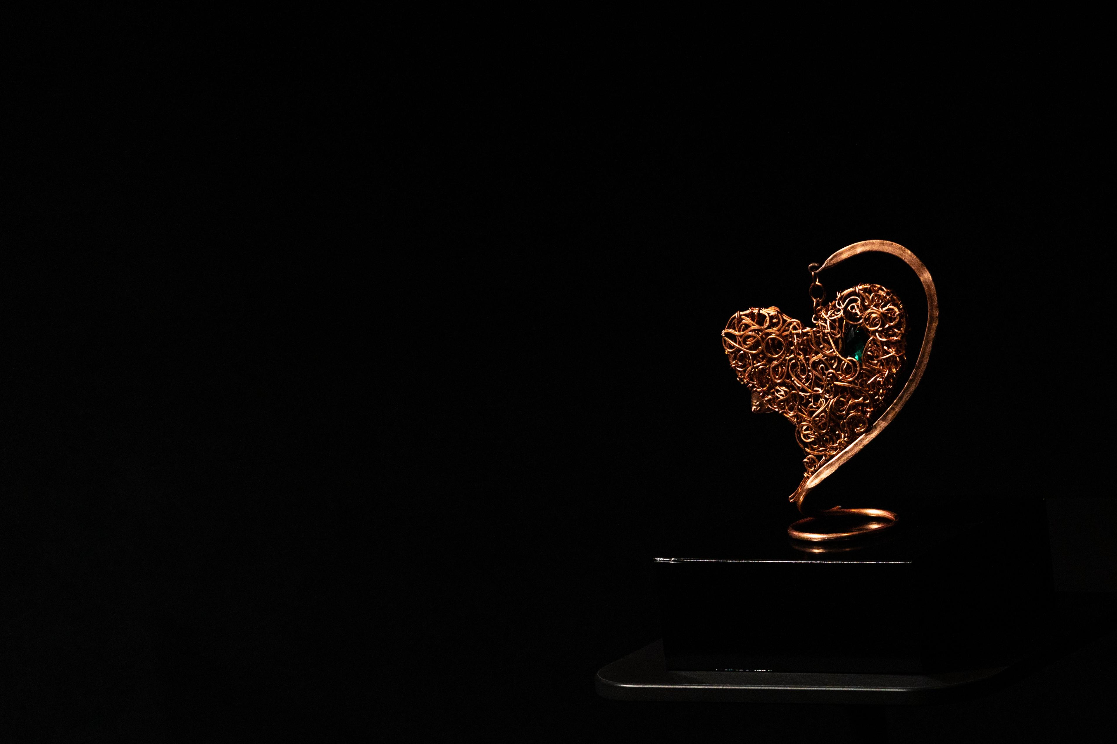 (l to r) award-winner Sheila Thomas holds the Alchemist’s heart alongside award designer ATCK Deidre Hardin.