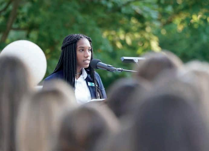 living reality. Senior prefect Sherry Xie ’21 told the new girls that the phrases behind each of the four quadrants of the crest — “Strength of Friendship,” “Knowledge and Tradition,” “Strength and Justice” and “Service and Success” (each) require a year to process thoroughly. “You build friendships your first year, soak in the knowledge and tradition of CGA in your second year, learn about strength and justice as a nascent leader, and put your service into success in your final year at Culver.”