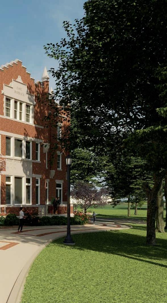 Construction will begin this summer on the Roberts Residential Quadrangle, which will include new Main, North and East barracks, as well as a central plaza serving as a focal point to one of the most iconic areas of campus. These new dormitories will replace the exist ing Main, North and East barracks.