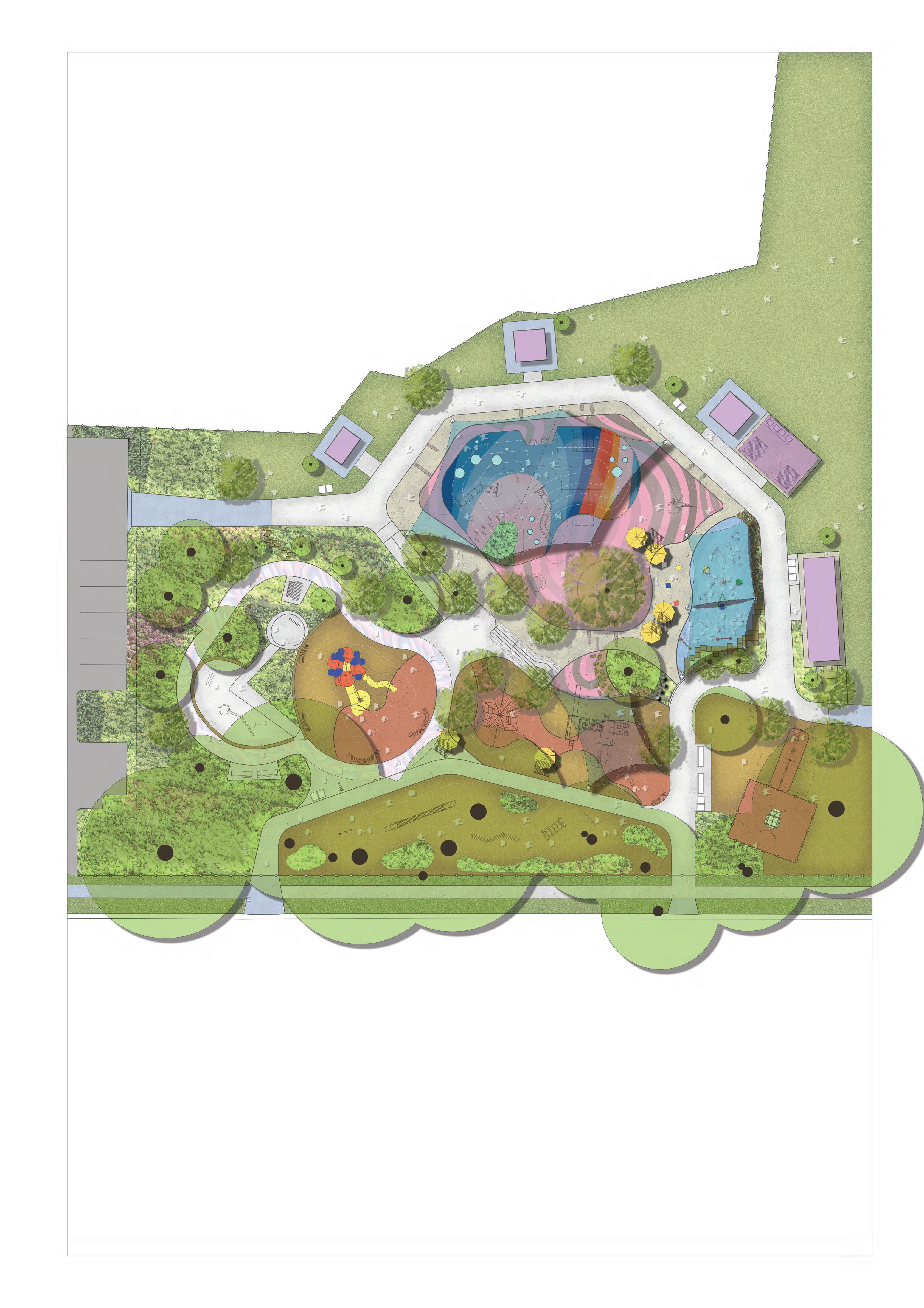The proposed play typology for the park embraces a diverse range of elements to cater to a wide spectrum of play preferences.