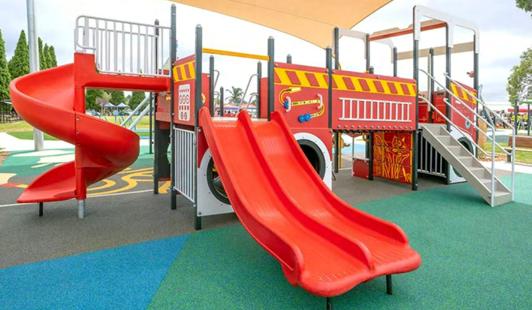 Adventure play areas offer embankment climbing, sliding items, fireman’s poles, climbing walls, and a watch tower to encourage problemsolving.