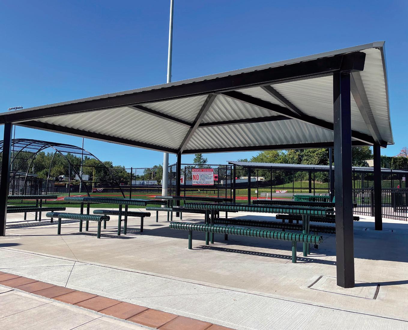 Frame: All structural framing of the pavilion shall be structural tube steel with end caps to form a clean, neat appearance with no place for birds to nest or small animals to roost. The compression ring shall be structural steel plate. Since all connections will bolt together, field welding shall not be required. Bolts shall be concealed within the tubing when possible.