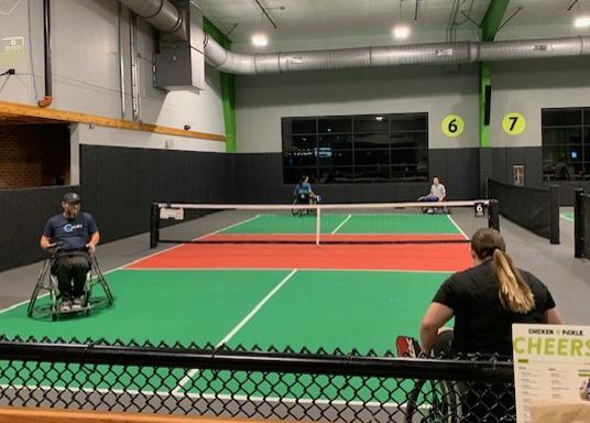Later that week, students joined the kickoff of a monthly adaptive sports series hosted by Jacob Heilveil, founder of Adaptive Sports for All and a three-time Paralympian. Held at Chicken N Pickle, the event offered a fun and inclusive environment for athletes of all abilities to connect through sport. Heilveil’s story from contracting polio as an infant to becoming a global marathoner, resonated deeply