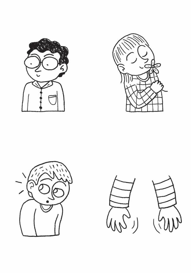 En kleur ik buiten de lijntjes. Soms ben ik bang en teken ik konijntjes. Vaak ben ik blij, een schilderij, met rood of zwart, en geel en bruin en groen.