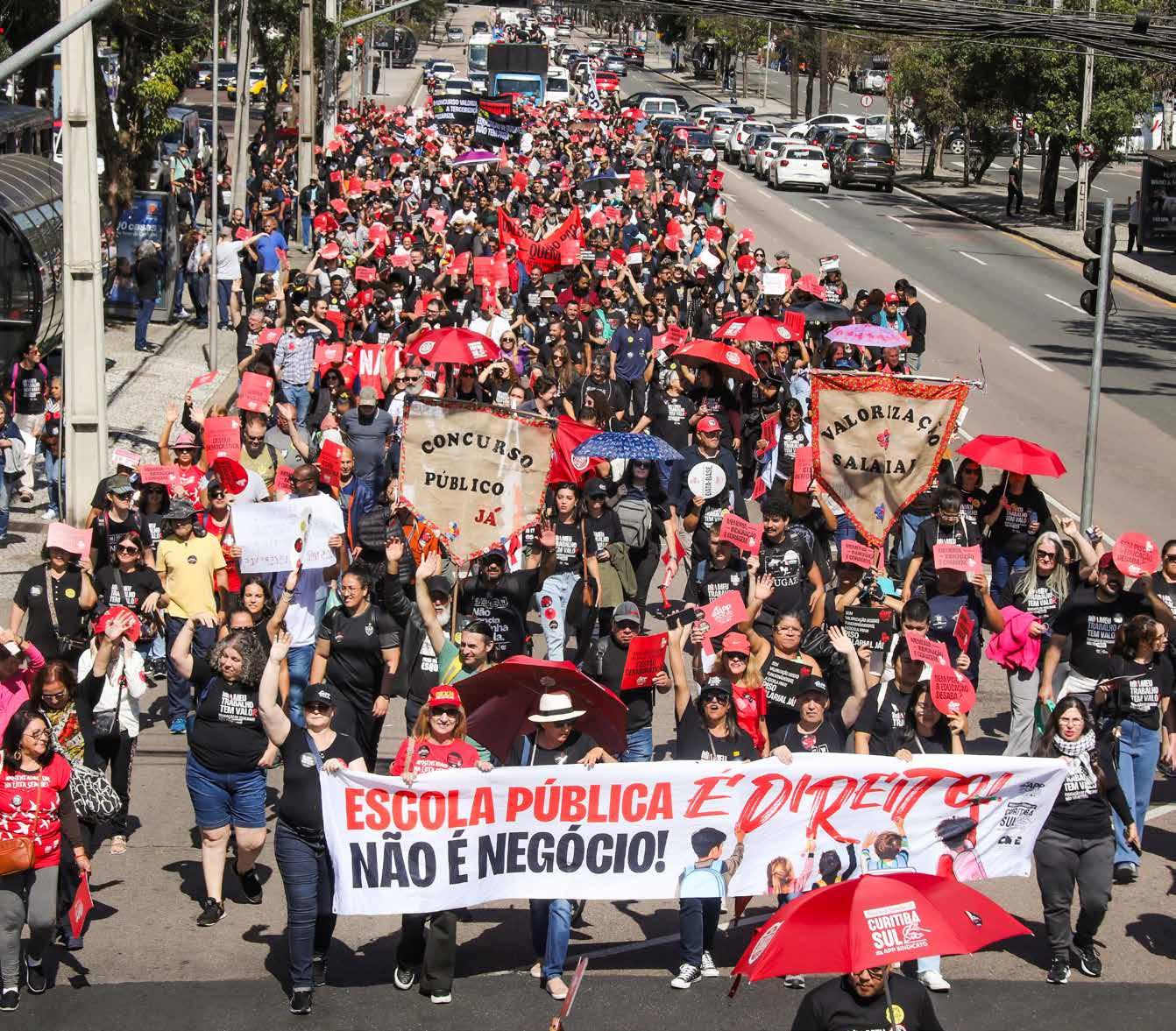As privatizações rompem o vínculo comunitário e precarizam as condições de trabalho de professores(as) e funcionários(as). No governo Ratinho Júnior, os estudantes que já eram vistos como números, agora viram lucro nas mãos de grupos empresariais.