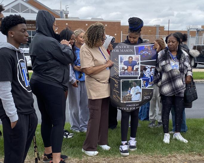Family and friends of former Hamilton Southeastern High School student-athlete Mason Alexander, who died in a March 1 vehicle accident in Fishers, gathered April 21 outside of the Hamilton County Sheriff’s Office, quietly holding signs and asking for answers about the accident that ended the life of their loved one.