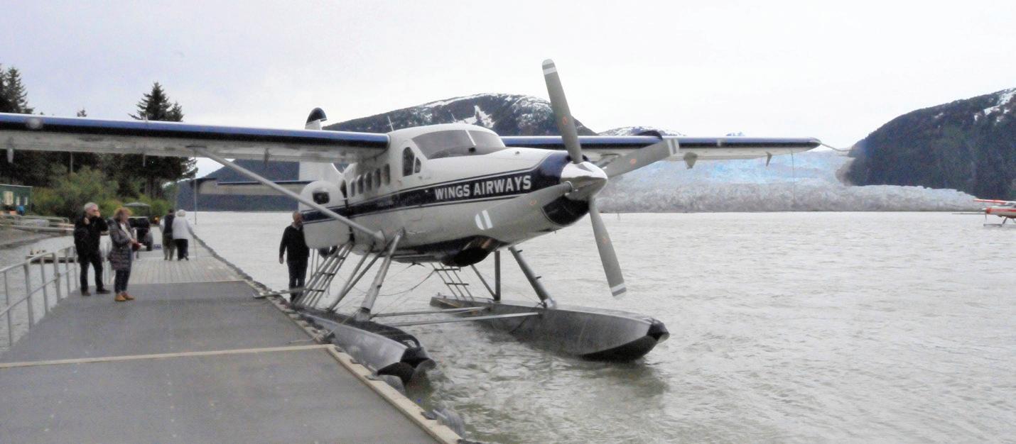 A popular activity for visitors to Juneau is a floating bush plane trip over five glaciers in the Juneau Icefield, with a stop at Taku Glacier Lodge, across the Taku River from the face of the Hole-in-the-Wall Glacier, a branch of the Taku Glacier. Guests at the lodge are treated to a meal including grilled wild salmon. The salmon attracts black bears, which have become their own attractions to the lodge. After dining, visitors can also take a walk in the scenic woods near the lodge, where they are warned to be on the lookout for bears.