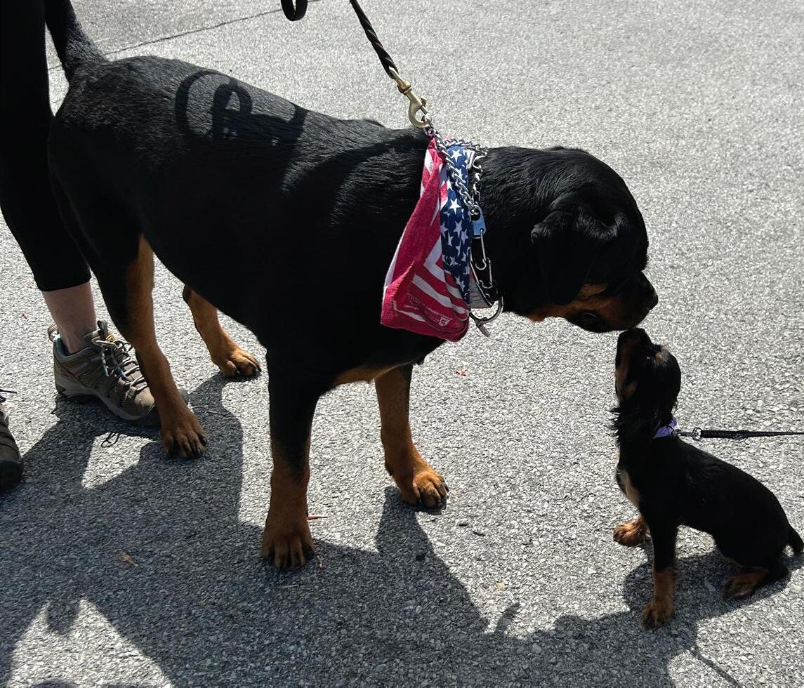 Bridget Rogers sent us this snapshot taken when she and her daughter, Elle, visited the Fishers Famers Market July 8. Their 3-year-old Rottweiler, Diana, got to meet little Luna, a King Charles Spaniel puppy. The Fishers Farmers Market is from 8 a.m. to noon every Saturday through September at the Nickel Plate District Amphitheater. (Photo courtesy of Bridget Rogers)