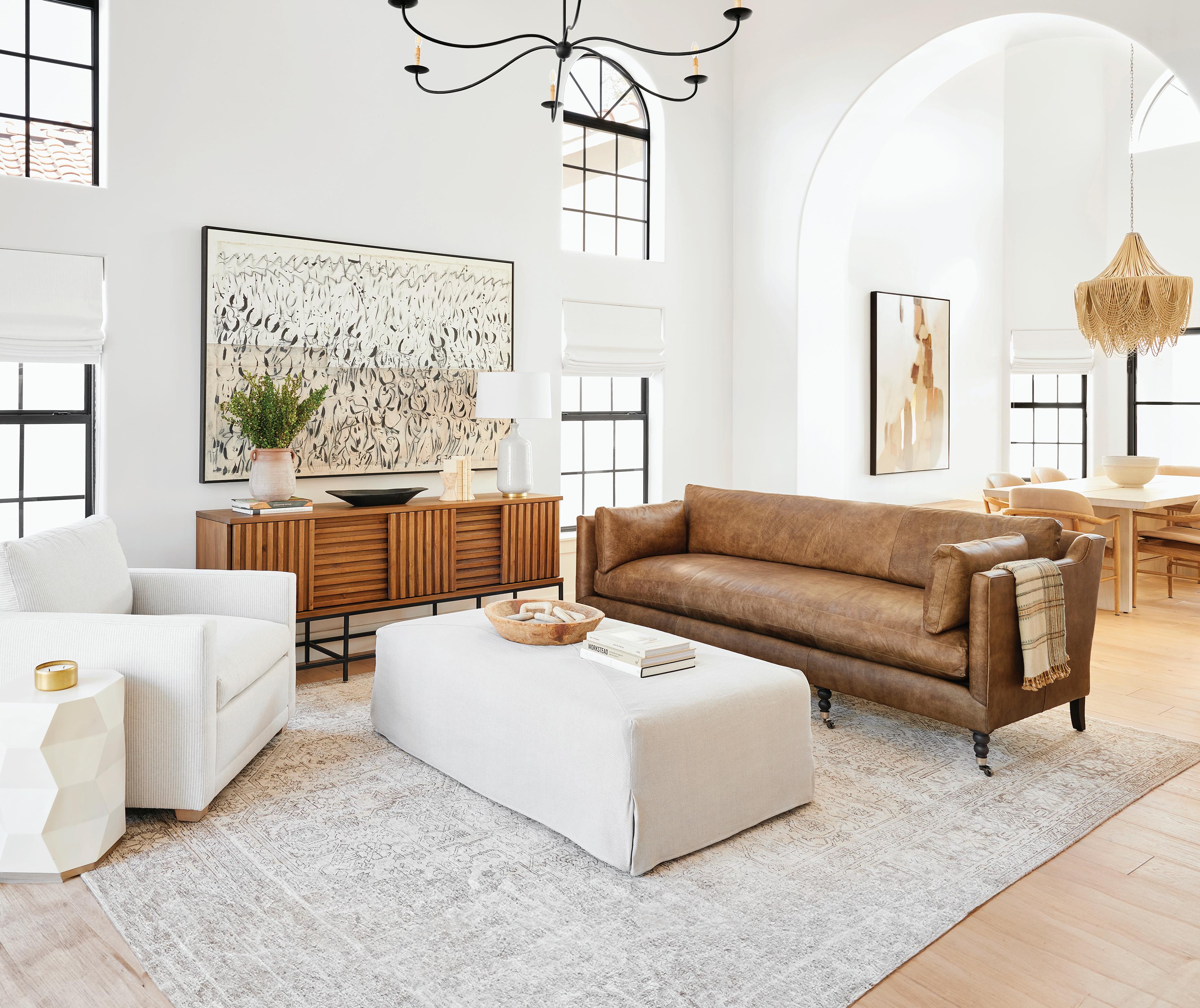 FRONT PAGE PRODUCT INFO: THE MILES SLIPCOVER OTTOMAN 61”x35”x18”