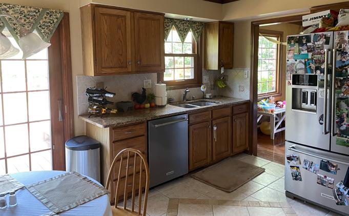 • The former kitchen and dining room spaces were combined to create a new, larger kitchen that serves as the heart of the home.