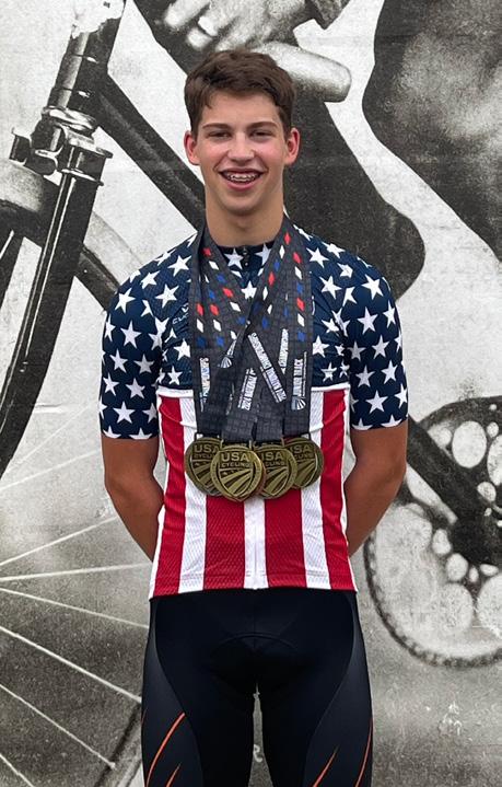 Westfield High School junior Jackson Clary with his medals after winning the Omnium National Championship in USA Cycling Junior Men 1516 division in August 2024.