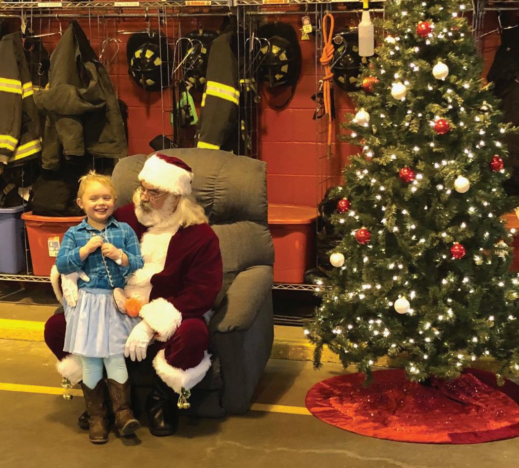 Mack’s 10-year-old daughter visits Santa Claus at the Firehouse. (Photo courtesy of Ryan Mack)