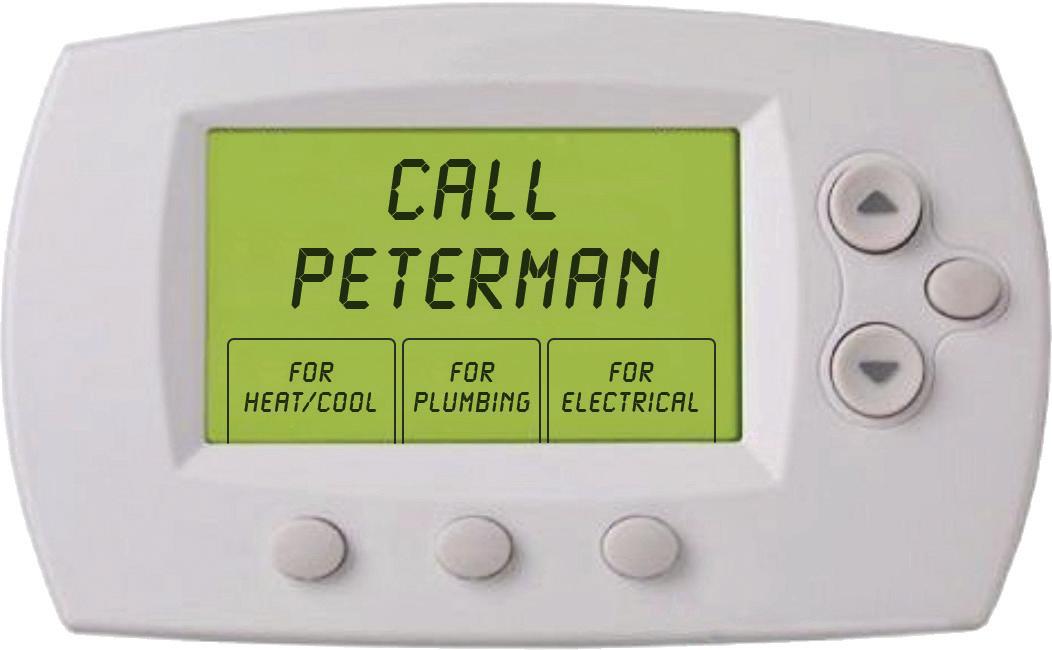 $100 off valid on HVAC or plumbing repair of $500 or more. Free diagnostic valid on electrical repair of $100 or more. Reasonable outside clean-out access required for drain clearing, or additional access charges may apply. Not to be combined with any other offers, discounts, or previous purchase. Restrictions may apply. Expires: 09/30/2023 PL#: PC11700082 Drain Clearing $83 As low as Any Heating or Cooling Repair of $500 or more Did You Know? An average panel lasts 20-3o years Free Electrical Panel Replacement Estimate Peace of Mind! Any Plumbing Repair of $500 or more 317-747-0588 Call Now or Scan to Schedule in Seconds! Get a 30% Tax Credit & save up to $2,000 when you install a New Heat Pump! Scan QR to learn more With Any Electrical Repair Free Diagnostic of $100 or more Peterman Brothers is proud to sponsor Fri, Aug 18 Military & First Responders’ Day at the 2023 Indiana State Fair Extend the Life of Your Air Conditioner! Peace of Mind for Just $59 Why get annual tune-ups? Keep Your Energy Bill Lower Improve Your Air Quality Reduce Chance of Breakdowns Extend the Life of Your System L L L L 317-747-0588 Call to Schedule Your Tune-up Today!