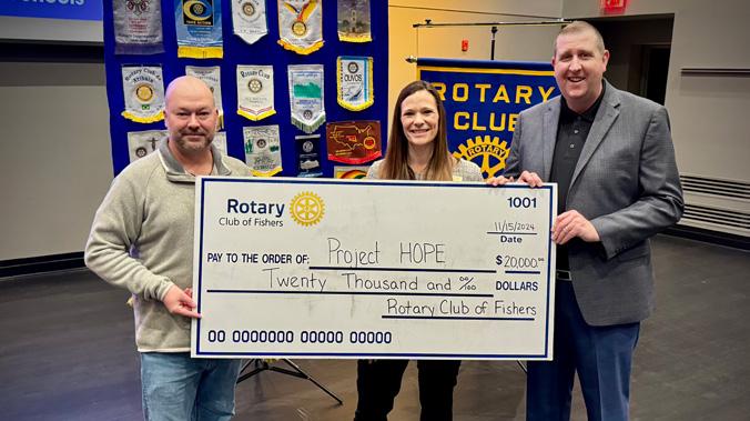 Fishers Rotary Club donated $20,000 to Hamilton Southeastern Education Foundation’s Project Hope during a special Rotary meeting Nov. 15 in support of the organization’s mission to provide access to school-based mental health care for HSE students.