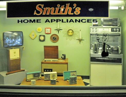1960s-era ap pliances in a display case in the John F. Kennedy Presidential Library and Museum in Boston.
