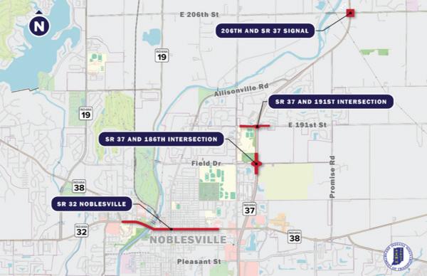 Map of reconstruction areas. (Map courtesy of INDOT)