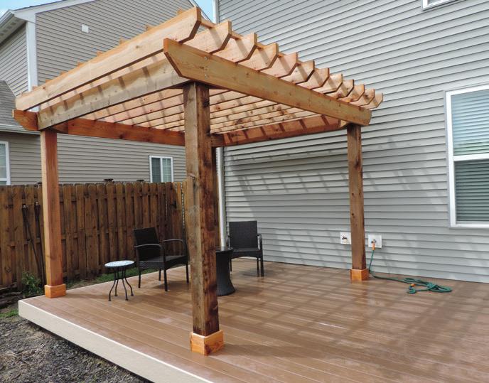 • An outdoor kitchen and integrated storage were added to make entertaining, meal prep and cleanup a breeze. Trex composite decking provides the look of natural wood with minimal maintenance and added durability.