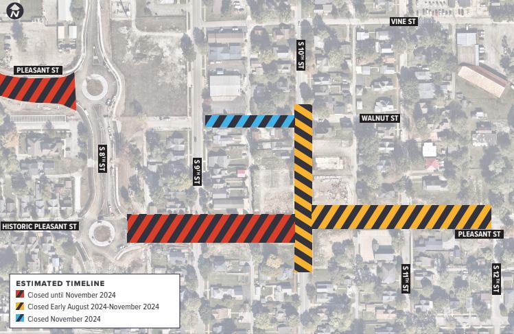 • Temporary closure of 10th Street from south of Pleasant Street to north of Walnut Street (Until Nov. 2024)