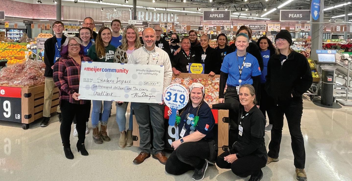 Student Impact of Westfield recently received a $10,000 donation from Meijer in Westfield as part of its Meijer Gives campaign after store employees voted for the organization to receive funding. Student Impact of Westfield will put the money toward a capital campaign to build an addition on its property. From left are Meijer store employees and Danyele Easterhaus, executive director of Student Impact of Westfield, Brittany Delph, executive program director and community development of Student Impact of Westfield, Emily Horkay, student life manager with Student Impact of Westfield, and Chad Clark, store director at Meijer in Westfield. (Photo provided by Student Impact of Westfield)