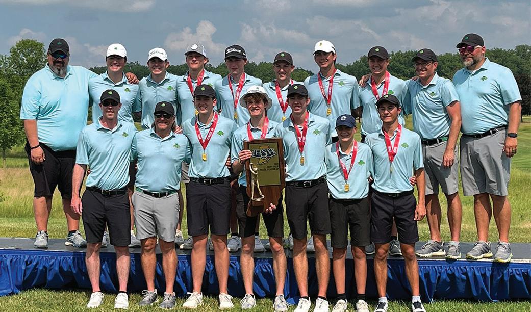 Second-ranked Guerin Catholic edged No. 1 Westfield by two strokes in the IHSAA boys golf state finals June 14 at Prairie View Golf Club in Carmel. The Golden Eagles finished with a score of 589, two strokes fewer than Westfield’s total. In the 2022 state finals, Guerin edged Westfield by one stroke.