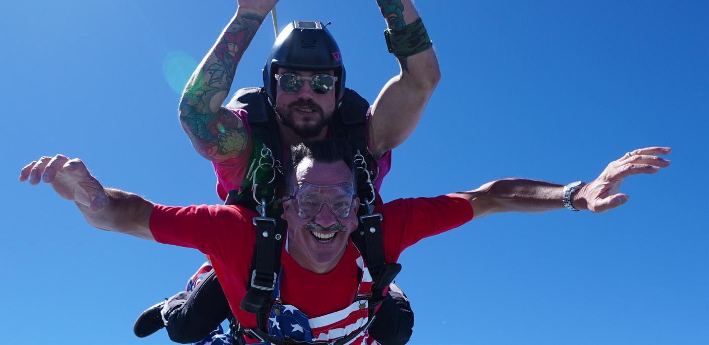 Westfield resident Tom Wothke, bottom, participates in last year’s skydiving fundraiser. (Photo courtesy of Tom Wothke)