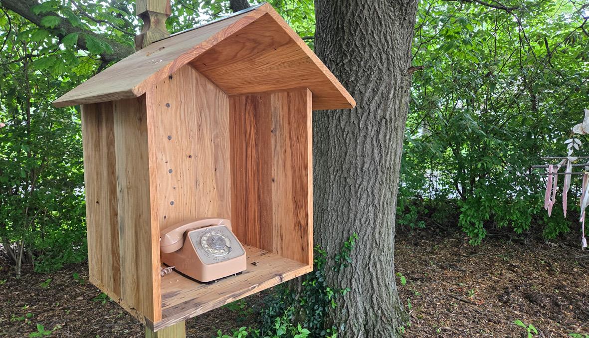 The wind phone was installed at St. Luke’s United Methodist Church on 86th Street in Indianapolis this month. Central Indiana Woodworkers built the wind phone structure. Brun said the project was designed for anyone in the community to access.